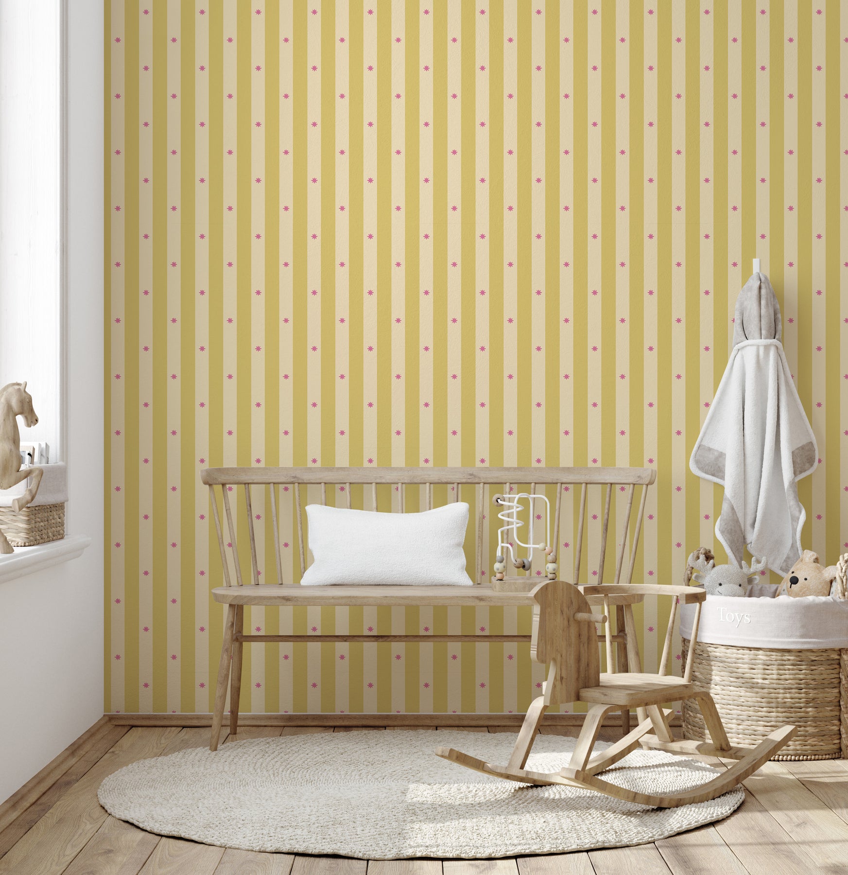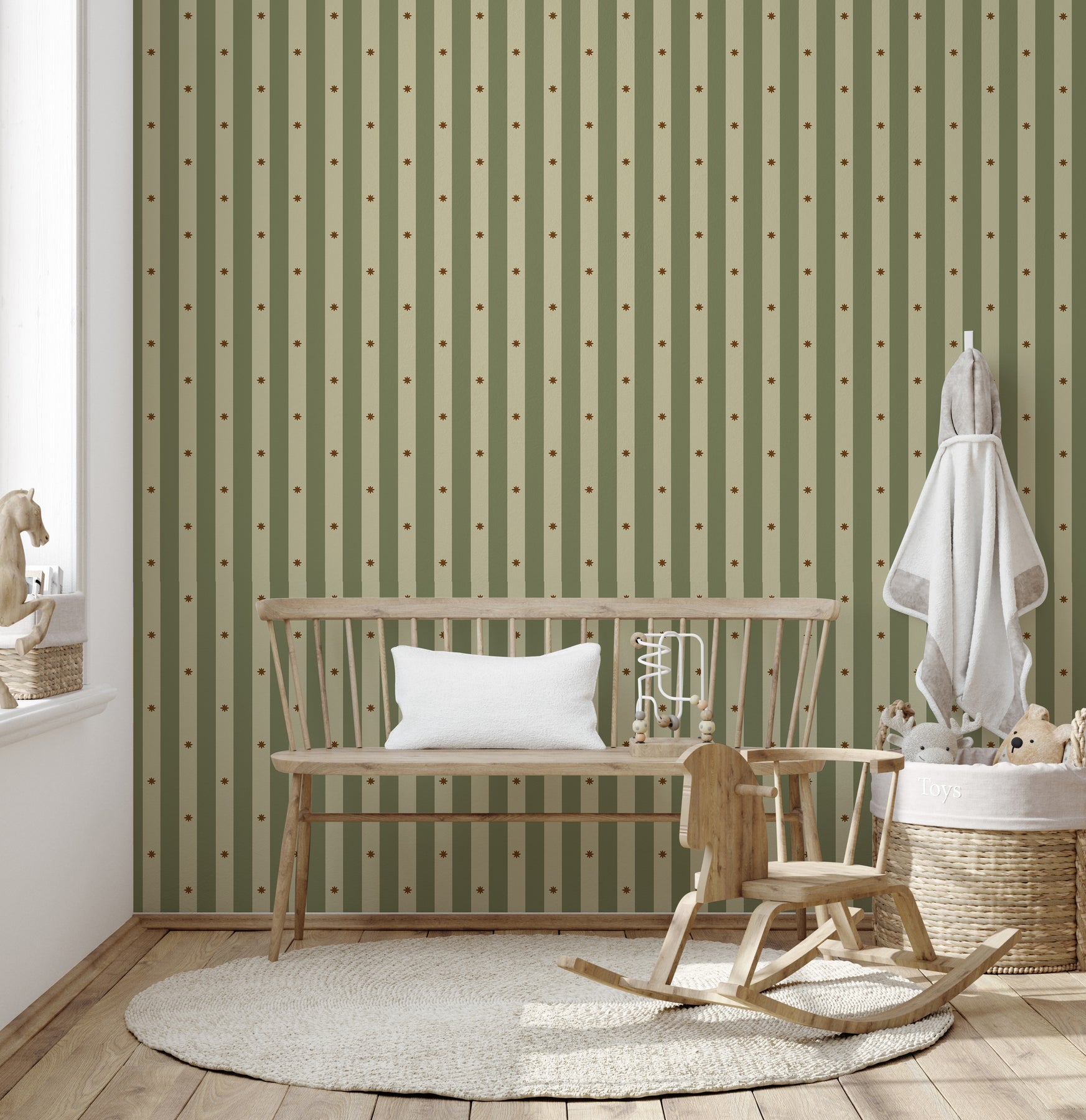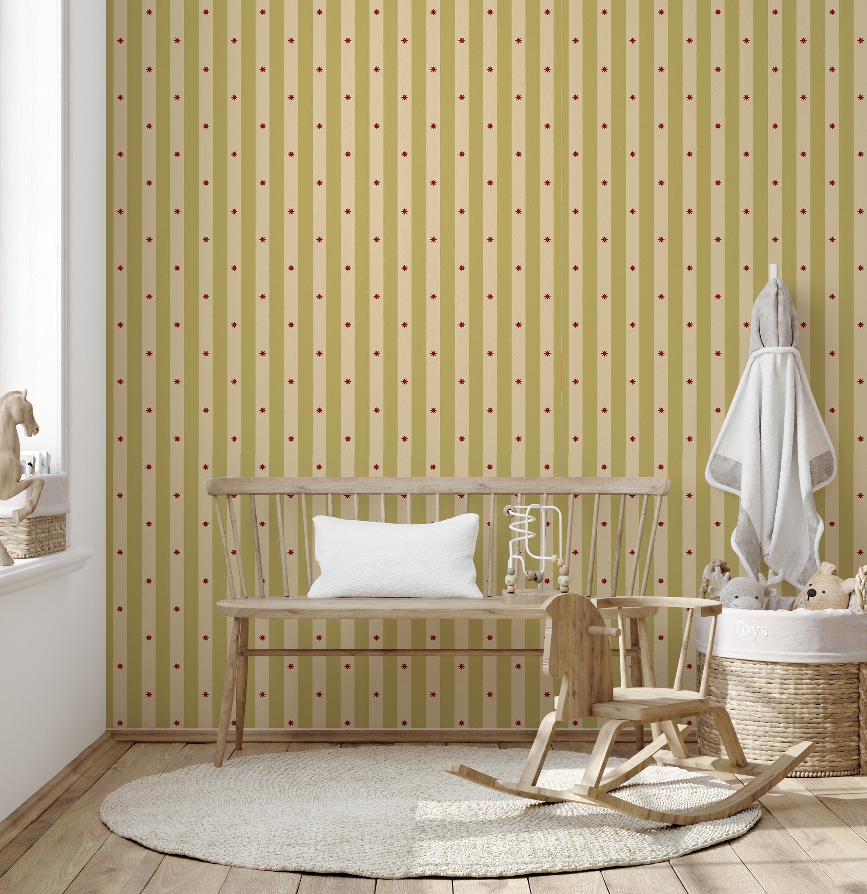 When going around a window it is best to imagine that it is NOT there while measuring. This ensures the pattern will be seamless over the entire space.